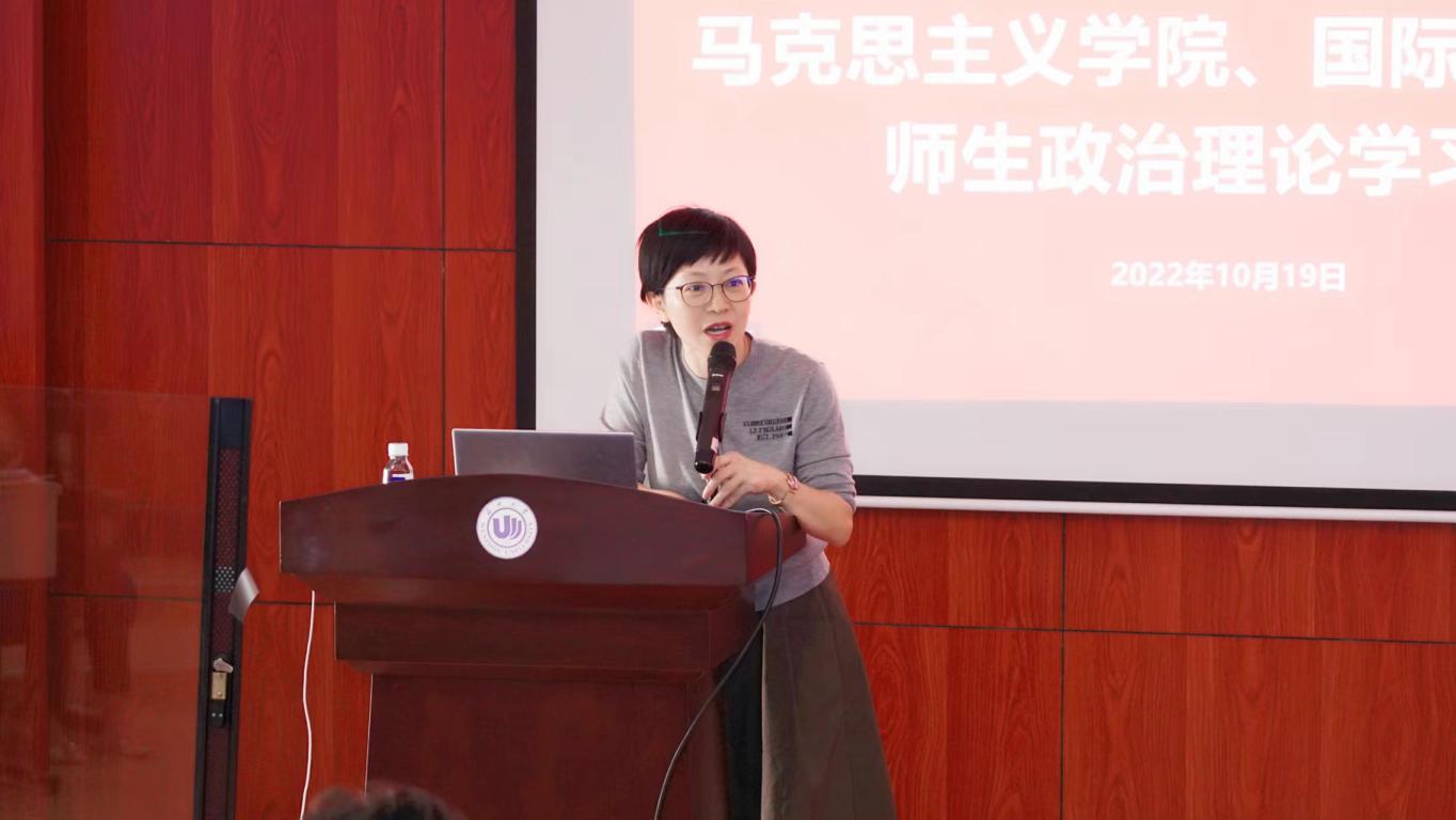 、马克思主义学院师生济济一堂,在国际楼203会议室召开师生政治理论学习会,马克思主义学院院长卓高生对中国共产党第二十次全国代表大会报告进行专题解读,色情导航