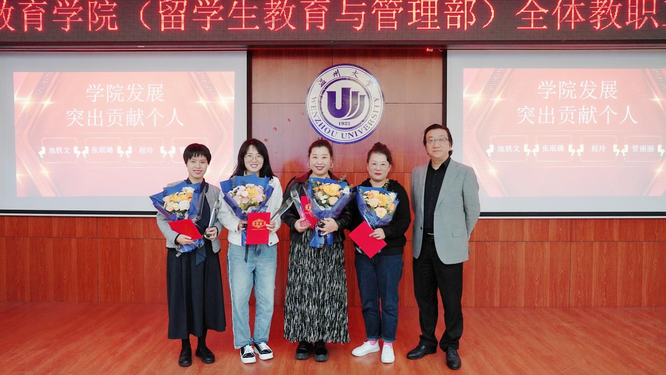 接着,会议对学院发展突出贡献个人进行嘉奖,获奖人员为池轶文、张珉璐、程玲和管丽丽。同时对招生工作先进个人进行表彰,获奖者为刘天、汪丹、陈翊、胡亚玲、钱江潮、涂海强、逯静、蔡燕。