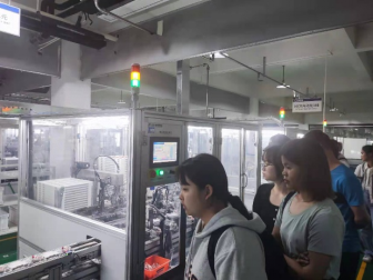 乐清研究院。林振权教授和章上聪老师热情地欢迎留学生的到来,林教授鼓励学生们多看多学,以后把中国的情况和中国的技术带到自己的国家。在章老师的带领下,同学们首先参观了EMC(电磁兼容)实验室,了解了实验室的用途、设备设施、操作过程;然后参观了智能化生产线后台系统。该系统正运用于人民电器集团公司的生产线,能实时监控生产线上的任何细小问题。章老师告诉同学们,现在温州制造业已经能实现从后台系统到企业生产线的全自主研发,这是响应国家“智能制造2025”的温州实践。