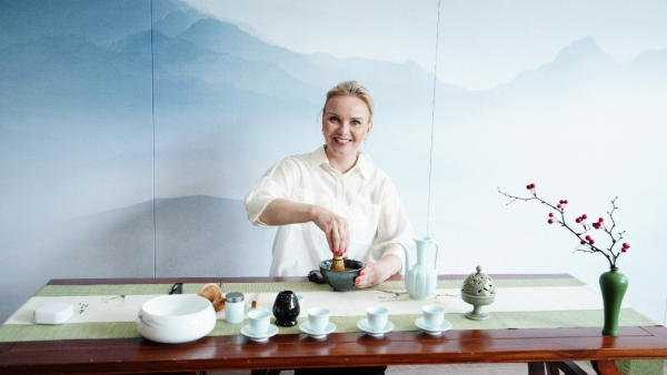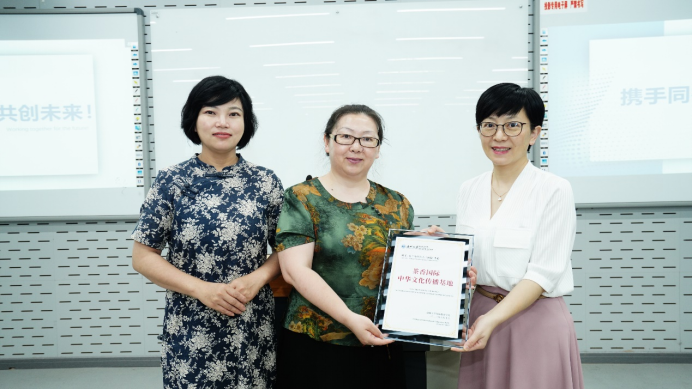 会议最后,林爱菊书记代表学院将“茶香国际:中华文化传播基地”的牌子授予了梁旭会长主持的芬兰“中国语言(文化)中心”,并表示未来将持续“以茶为媒”,以中芬茶文化交流为契机,在芬兰中国语言(文化)中心开设文化课程教学以及相关的文化交流活动。