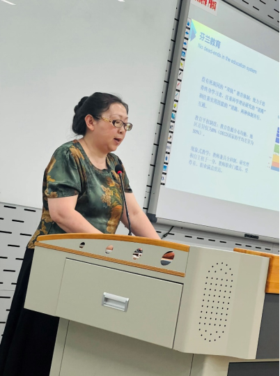 来自芬兰拉赫第市教育局的教育局长、芬兰知名校长和教育专家Marju博士随后也发表了精彩的演讲。她着重介绍了芬兰的现象教学方法如何运用到语言教学,强调了跨学科教学的重要性,通过结合不同学科的知识,帮助学生理解更广阔的概念。此外,提到在没有中国文化专家的情况下,与中国学校建立伙伴关系成为解决问题的方法,促进芬兰和中国学生之间的相互学习和文化交流。同时展示了中芬学生交流项目的丰富成果,加强了两国友好学校的交流合作。