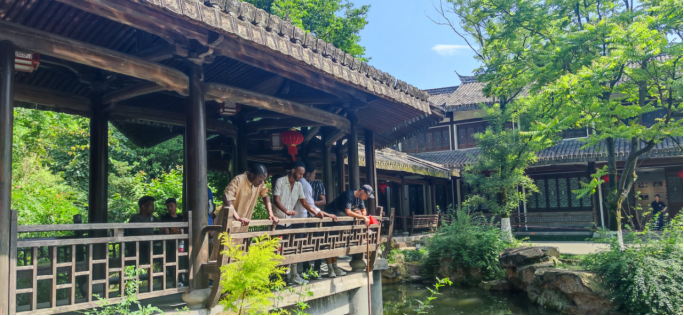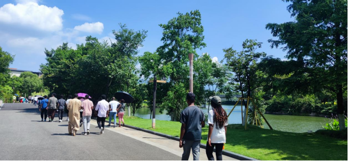 国际学生国情教育名师工作室暨“走进温州”开启了本学期系列活动的最后一站——三垟湿地暨南怀瑾书院。来自英国、俄罗斯、意大利、尼日利亚、越南、孟加拉国、泰国、土耳其、刚果、肯尼亚、摩洛哥、埃塞尔比亚等24个国家和地区的留学生们一起漫步三垟湿地并参观南怀瑾书院。三垟湿地是温州市内保持最完整的水网湿地,被誉为“浙南威尼斯、百墩之乡”,有城市“绿肾”的美称。留学生们满怀热情地参与到这次出行中,留下了很多青春的脚印。
