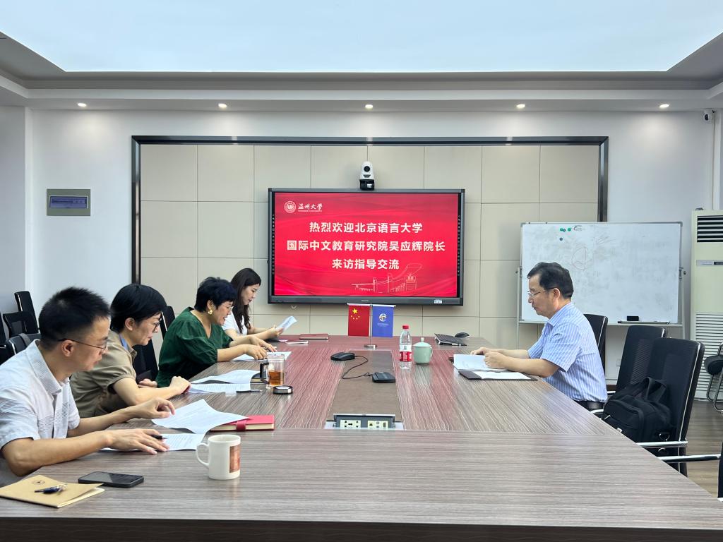 宋占美院长陪同吴应辉教授参观了学院的国情教育馆、茶香国际、唐风实验室等。交流会上,宋院长简要介绍了学校和学院的发展情况,并重点介绍国际中文教育专业建设情况。