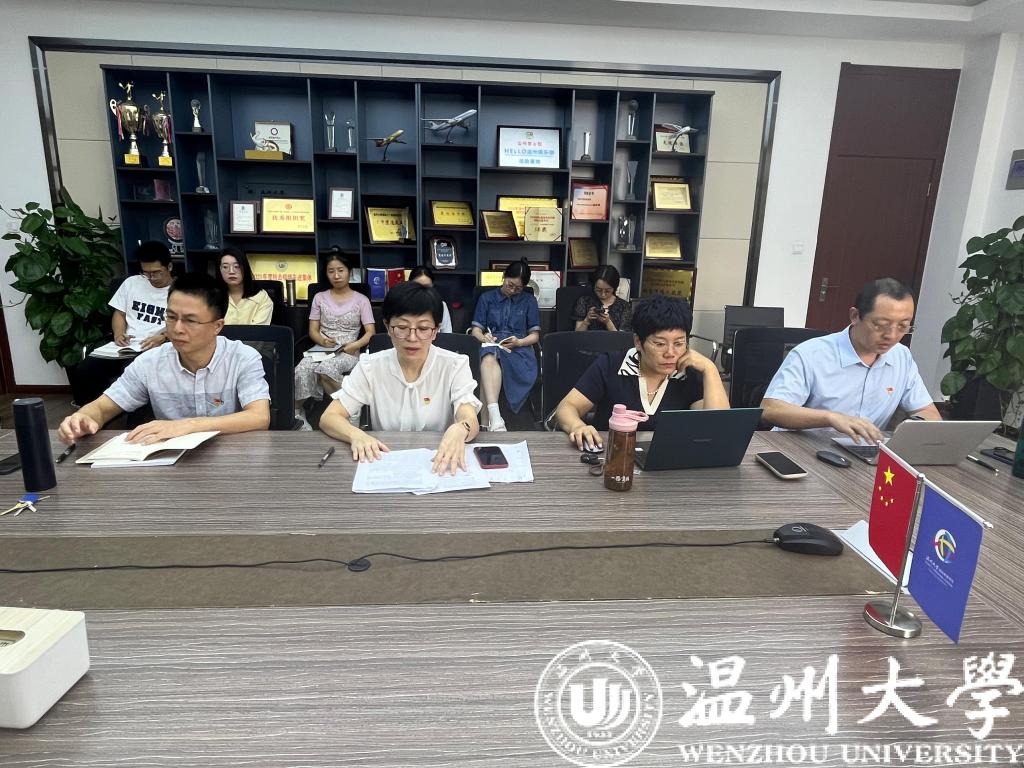 总支委员会会关于深入开展学习贯彻习近平新时代中国特色社会主义思想主题教育的工作方案》。她强调,全体教职工要认真学习、深刻领会习近平总书记重要讲话精神,深刻认识开展主题教育的政治意义、理论意义和实践意义,要紧密联系学院工作实际推进主题教育,深入开展调查研究,高质量推进国际中文教育“博士点”创建工作、来华留学质量认证、省国情教育名师工作室建设、国际学生提质增效、国际学生文化品牌建设等工作。以实际行动和成果助力留学温大品牌建设。