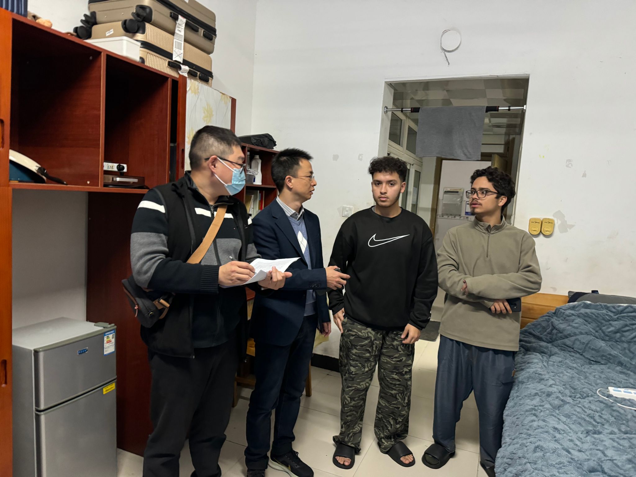 全体国内学生及留学生公寓内的安全和卫生问题进行全面检查和整改。在检查过程中,学院领导老师们对学生公寓内的消防设施、电器设备、门窗等进行了细致的检查,还对公寓内的卫生状况进行了评估,包括宿舍卫生、公共区域卫生等方面,并提出了针对性整改意见。同时,在走访过程中再次向同学们强调了公寓安全和卫生的重要性,提高同学们的安全意识和环保意识,学生们也积极响应,主动参与到行动中来,共同营造良好的住宿环境。