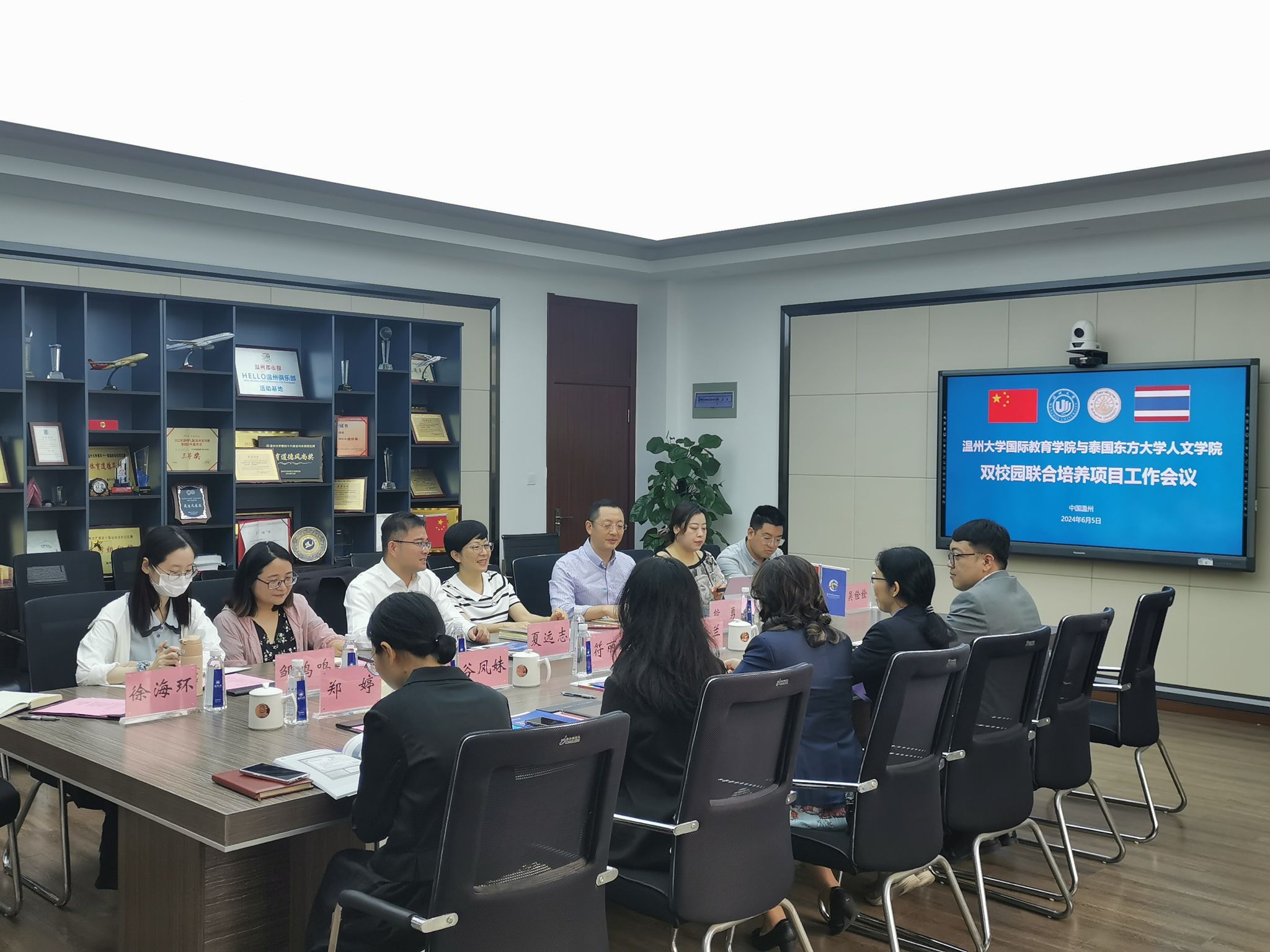 在泰国东方大学孔子学院建设及人文学院联合培养项目中给予的坚定支持和做出的卓越贡献表达了衷心的感谢,并指出双方联合培养项目进展顺利,温大派遣的汉语教师教学水平好,研究能力强,为泰国东部地区汉语教学事业做出了积极贡献,并为泰国东方大学的汉语专业建设提供了有力支撑。她期待双方能够继续保持紧密合作,共创新的辉煌。
