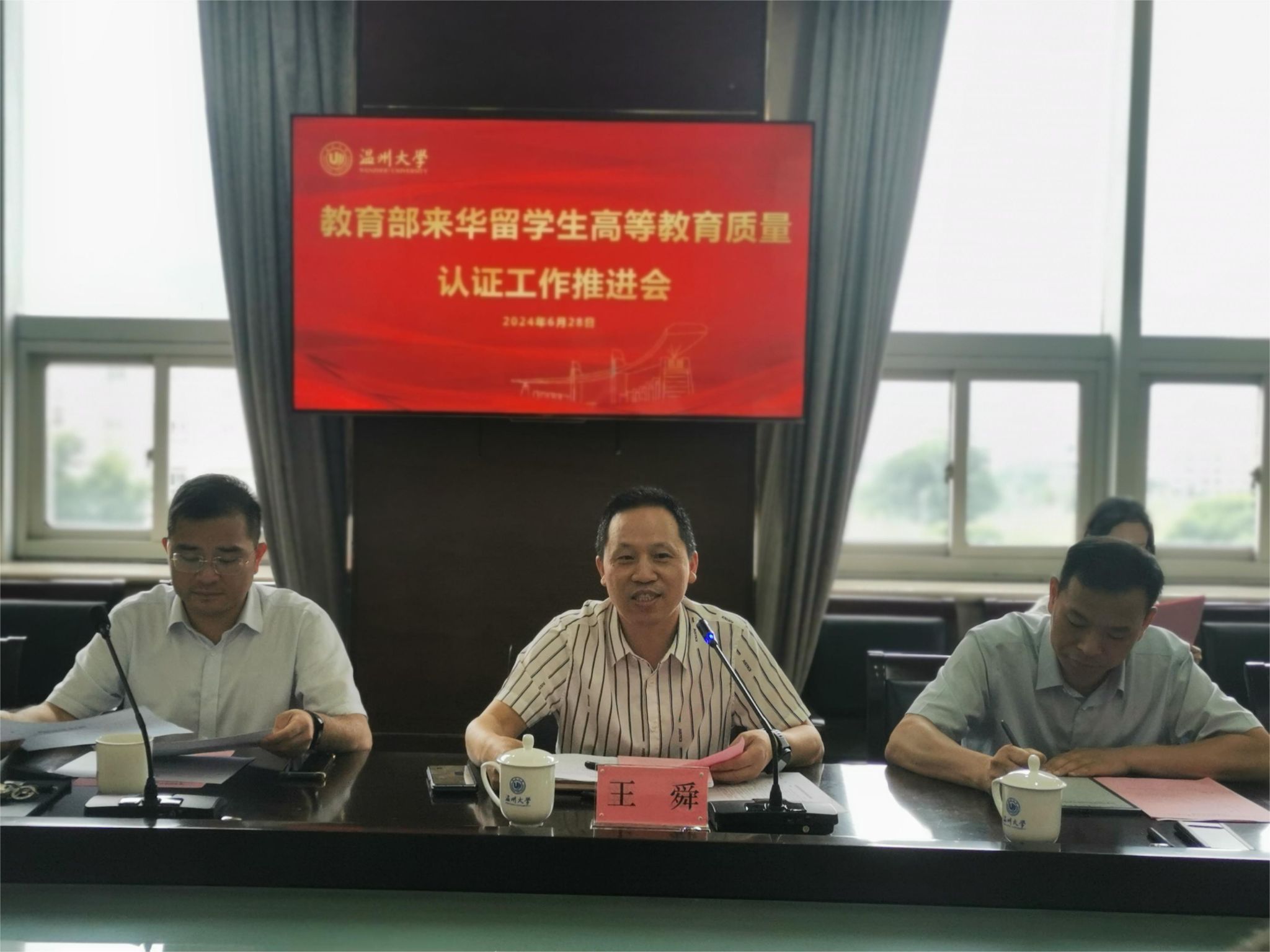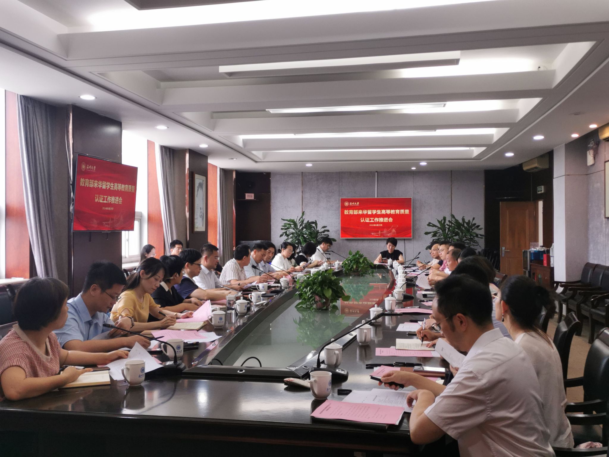 6月28日上午,我校在南校区行政楼 419 会议室召开来华留学生高等教育质量认证工作推进会。会议由王舜副校长主持,各相关职能部门及二级学院负责人、工作人员参加会议。