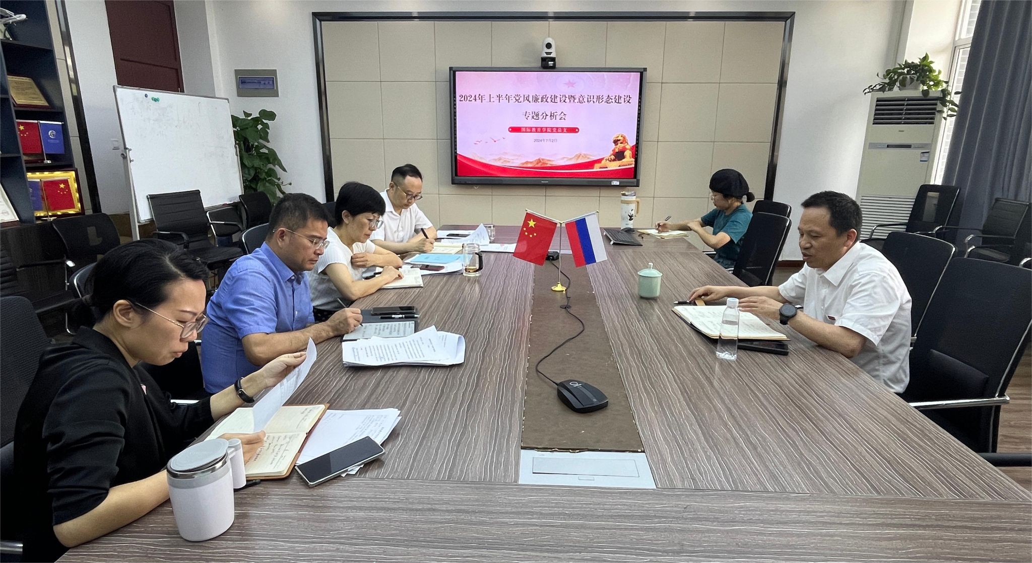 在北3-311会议室召开了2024年上半年党风廉政建设暨意识形态工作专题分析会。校党委委员、副校长王舜到会指导,全体班子成员参加会议。会议由学院党总支书记林爱菊主持。