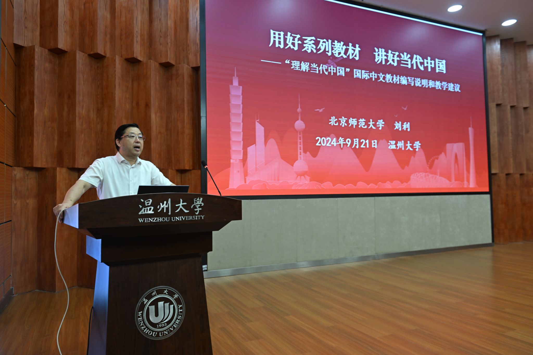 “理解当代中国”国际中文系列教材总主编、虚拟教研室牵头人刘利教授以《用好系列教材,讲好当代中国——“理解当代中国”国际中文教材编写说明和教学建议》为题,从探索新路径、秉持新理念、谋划新设计、实现新作为四个方面阐述了“理解当代中国”国际中文系列教材在拓展国际中文教学路径、明确国际中文教育育人目标、集成创新教学理论方法和教材编写体例,推动国际中文教育内涵式发展方面所做的有益探索。他表示,通过理念驱动、内容驱动、方法驱动、实践驱动,一定能够推动国际中文教育在改革中实现高质量发展。