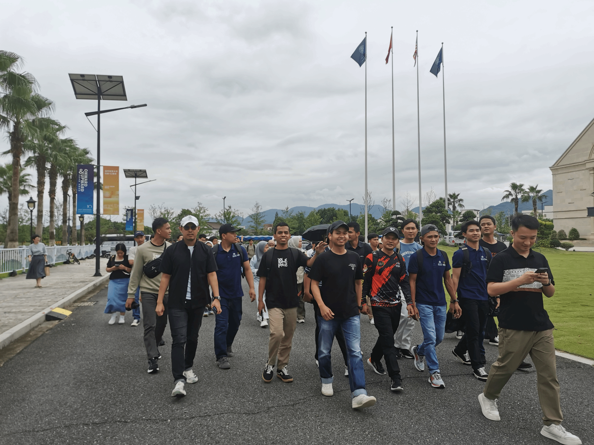 林爱菊书记带领80名温大青山班语言生学员及联合培养硕士生,走进温州肯恩大学,踏上了文化交流与学术探索的旅程,感受这座融合中美教育精华的高等学府的独特魅力。此次参观不仅加深了印尼学员对中国的理解,也激发了印尼学员努力学习中文的动力。