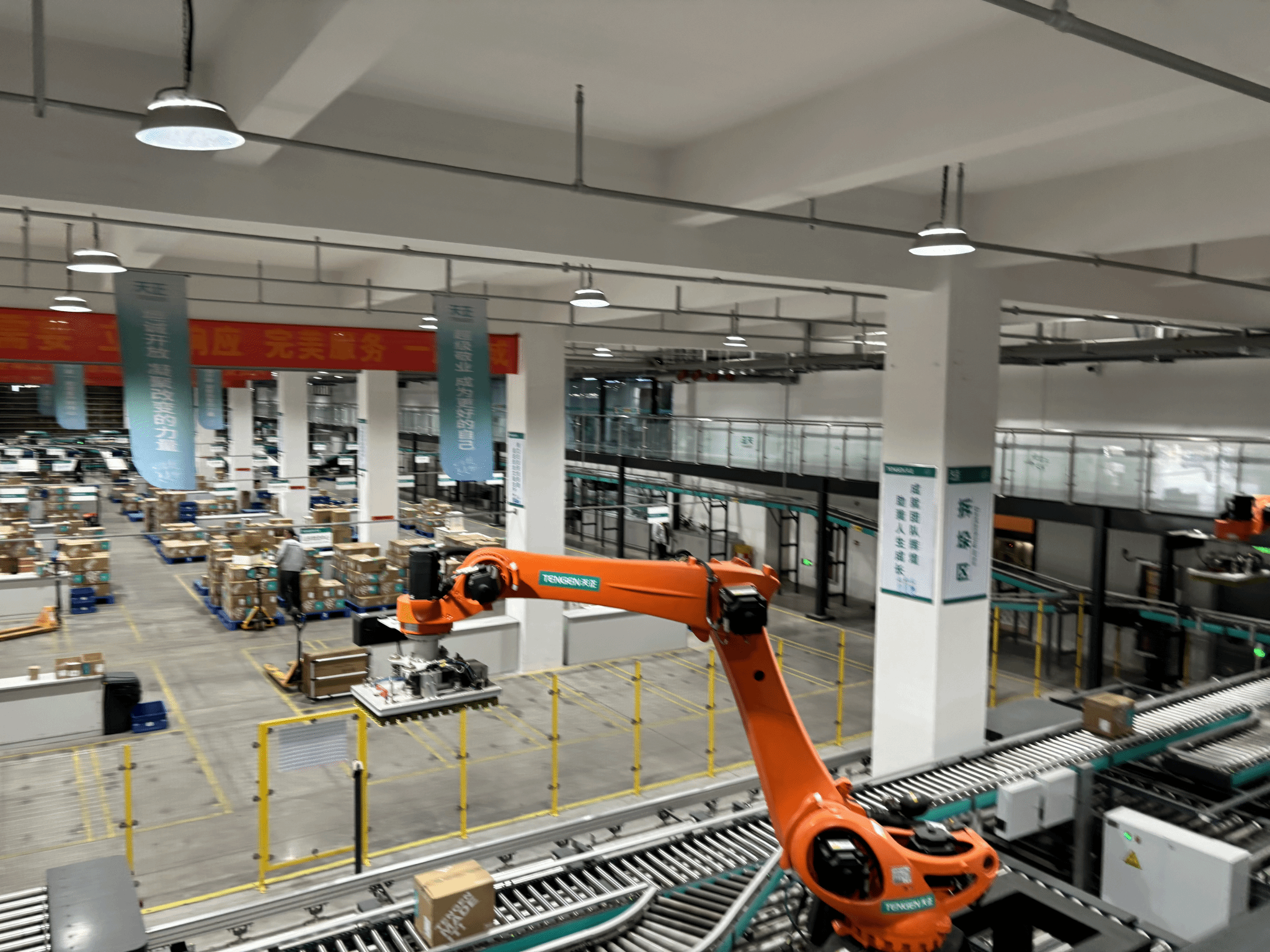此外,学生们还参观了托盘式立体库和分装拣拎区域。托盘式立体库的高效存储与分拣系统,以及分装拣拎环节的精准操作,都让他们对物流管理的智能化有了全新的理解。