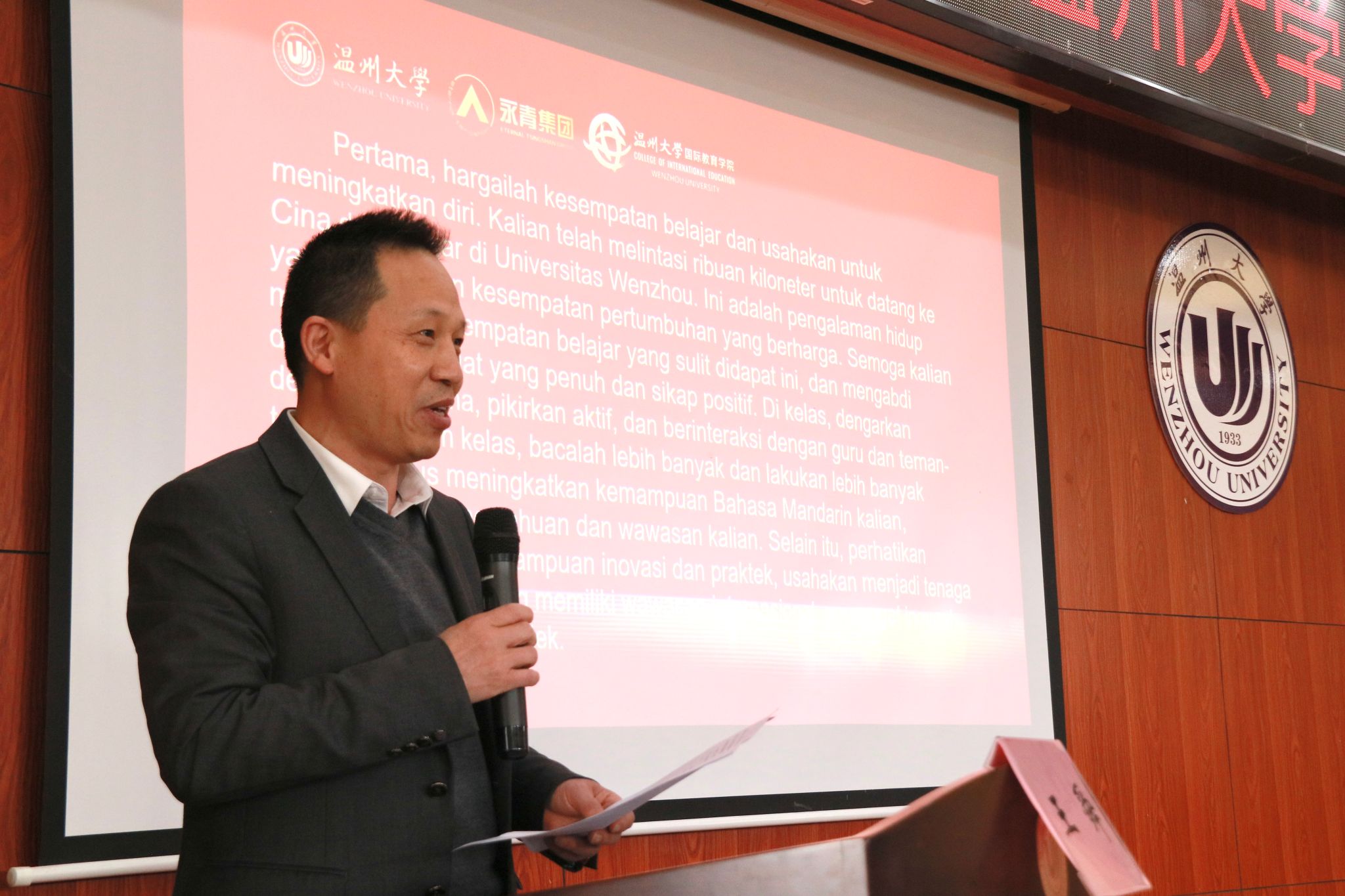 的支持表示感谢,并对第四期学员表示热烈欢迎。王校长充分肯定了青山班在人才培养、校企合作方面取得的成绩,强调了校企合作对于提升学生综合素质、促进教育与产业深度融合的重要意义,并对青山班学员们提出了三点希望:一是珍惜学习机会,努力提升自我;二是深入了解中国,促进文化交流;三是加强团结协作,共同成长进步。