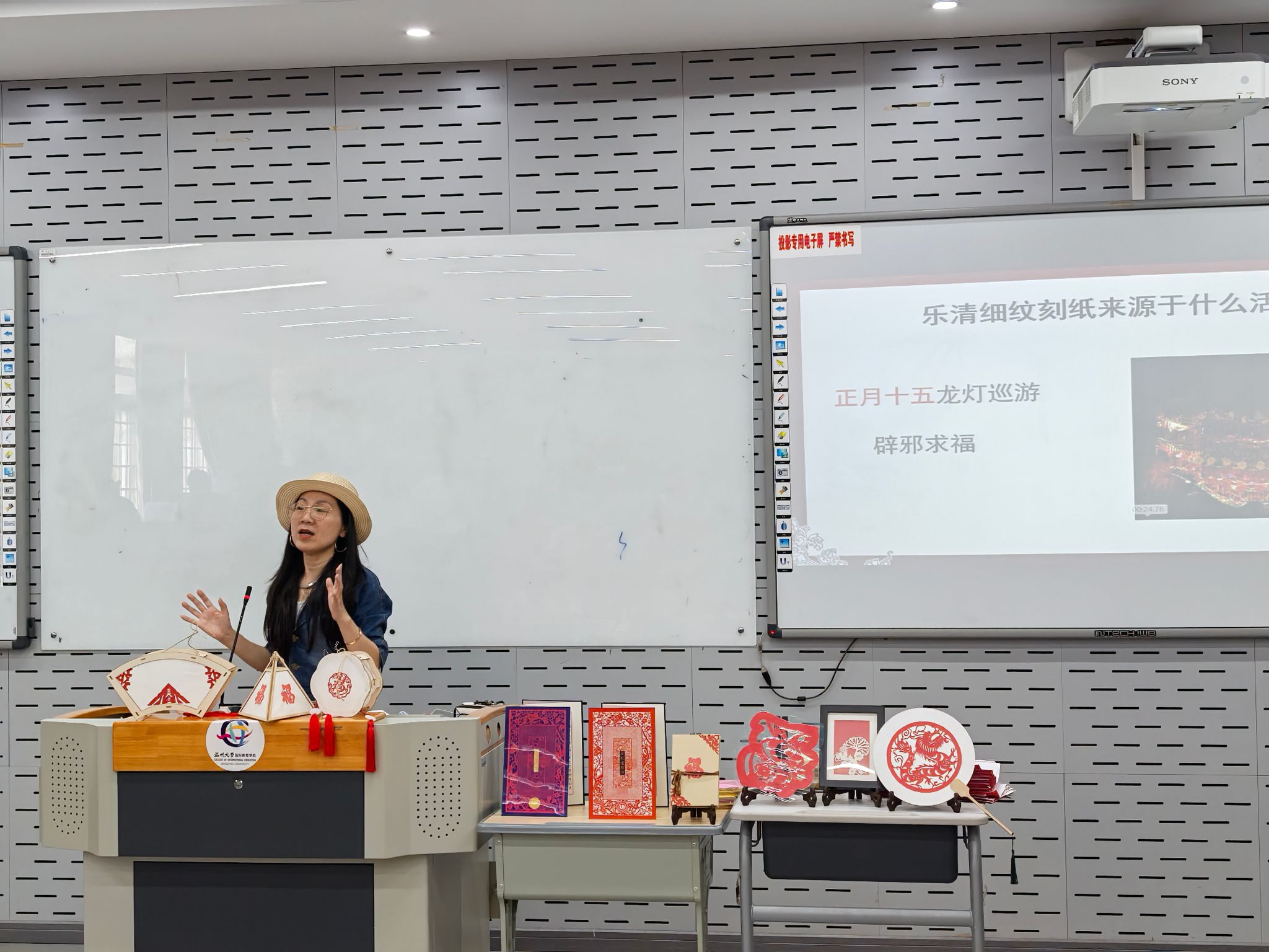 2025 年 4 月 9 日,怀揣着对中国优秀文化的热忱,学院精心策划并诚挚邀请了在传统艺术领域造诣颇深的陈怡老师,带领温大青山班的学员们,踏上一段领略国家级非物质文化遗产 —— 乐清细纹刻纸独特魅力的奇妙旅程。