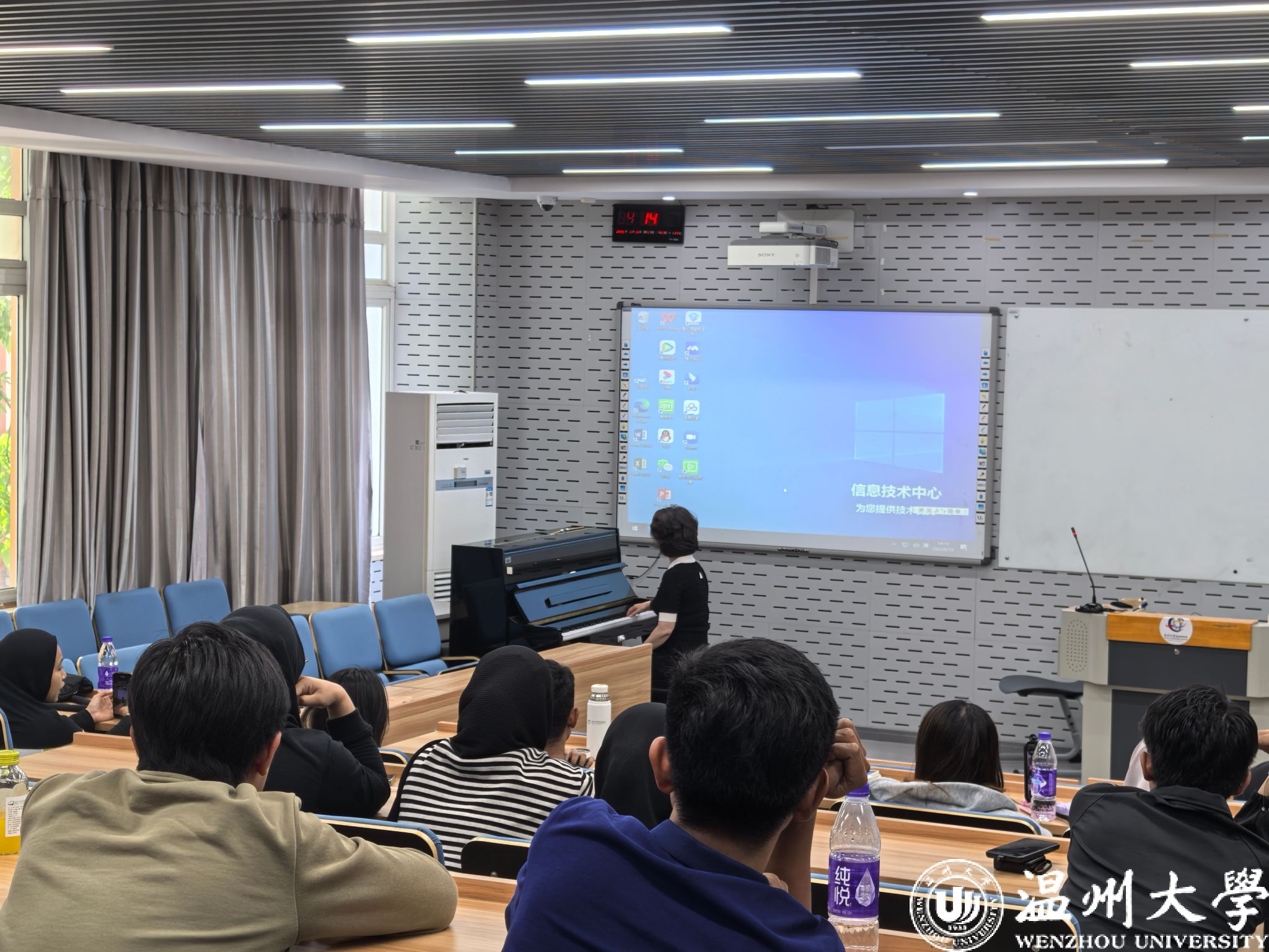 讲座伊始,曾春玲以一首耳熟能详的《月亮代表我的心》拉近了与学员们的距离,悠扬的旋律引发全场共鸣。随后,她现场弹奏了《梁祝》《叮叮当》等中外经典曲目,通过对比深入解析了民歌背后的文化内涵与艺术特色。