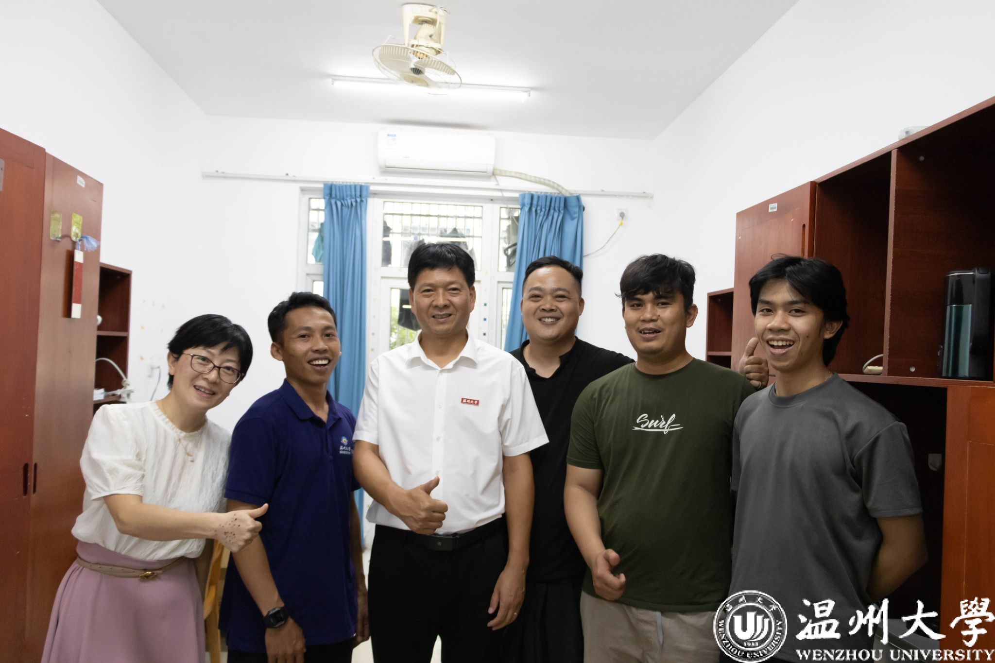 校党委副书记庄兴忠深入学生宿舍,亲切看望刚刚入住的国际新生,详细了解他们的住宿安排和生活需求,并鼓励他们尽快适应新环境、融入温大大家庭。庄兴忠副书记叮嘱要持续做好国际学生的服务保障工作,为他们创造温馨、安全、便利的学习生活环境。这份来自学校的暖心关怀,让远离家乡的学子们倍感亲切和鼓舞。