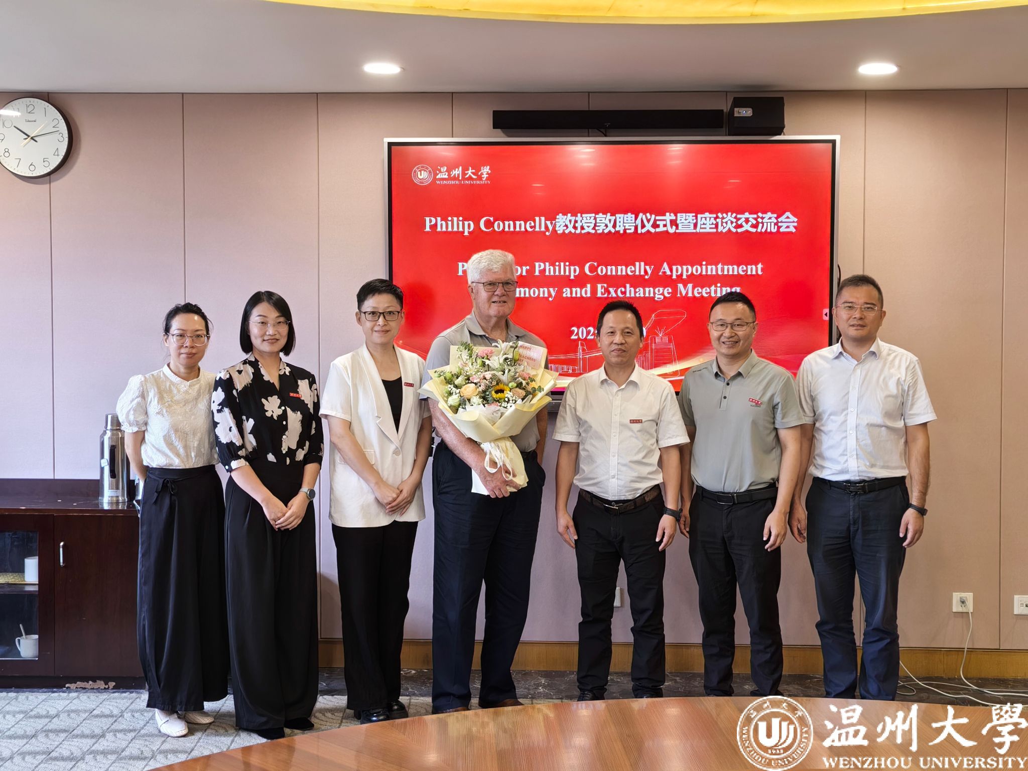 王舜副校长代表学校对Philip Connelly教授的加盟表示热烈欢迎。他强调,Philip Connelly教授作为温州肯恩大学创建的亲历者与重要推动者,为中美教育合作作出卓越贡献,他不仅拥有丰富的教学与研究经验,更在中外合作办学、学科建设、人才培养等方面成果卓著,希望在Philip Connelly教授指导下,学校在国际学生招生体系优化、教育教学质量提升、学科建设及国际化管理服务升级等方面实现新突破。