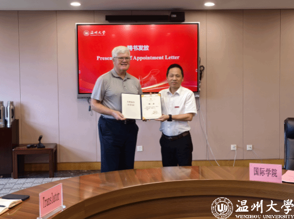 会上,夏远志详细介绍了Philip Connelly教授的学术背景、工作经历和主要贡献。王舜副校长代表学校与Philip Connelly教授签订了聘任协议,并颁发了客座教授聘任证书。