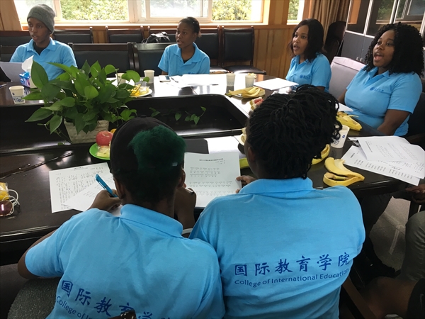 留学生们纷纷为国教院专门创作《留学生之歌》点赞。会后,与会留学生代表在音乐学院研究生林汉霖、吕莎的指导下认真开始学唱《留学生之歌》。