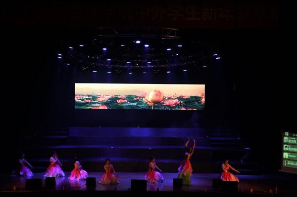 中外学生迎新年联欢晚会在校育英大礼堂隆重举行。学院党总支书记朱建平等领导嘉宾出席了本次活动,1300余名中外师生观看了晚会。