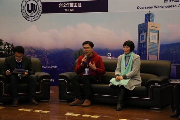 国际合作学院王洪斌博士:如何借助“一带一路”提供重要契机,加快发展创新。温州作为沿海发达地区参与“一带一路”建设,具有很多优势,温商资源就是其中之一。温州近年来实施温商回归工程,为海外温商充分利用国内资源参与“一带一路”建设提供了良好的环境。温商群体和温商人非常具有特点,我用十二个字来总结一下,即“弱联系、强纽带、精组织、大平台”,这个大平台就是温商网络。