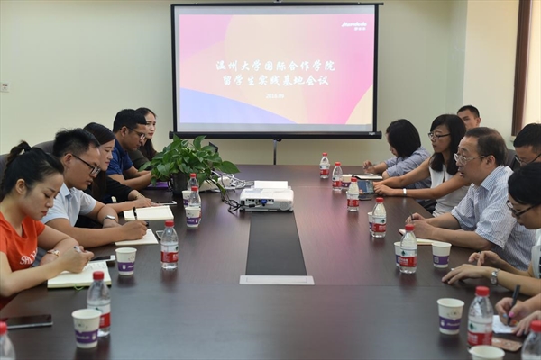 国际合作学院院长严晓鹏博士,副院长包含丽,温州梦多多文化创意有限公司总经理赵小波,学院汉语推广教研室主任郑婷等出席,双方就共建留学生实践教学基地交换了意见。