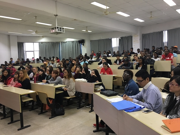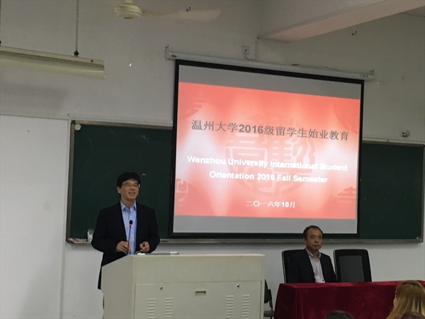 2016级留学生新生见面会在北校区3号楼203报告厅举行,160余位新生悉数到会。出席本次见面会的有国际合作学院党总支书记朱建平、副院长陈军,温大-SICAS留学中国协同创新中心主任张璐,国际学院各科室负责人以及其他相关人员等。