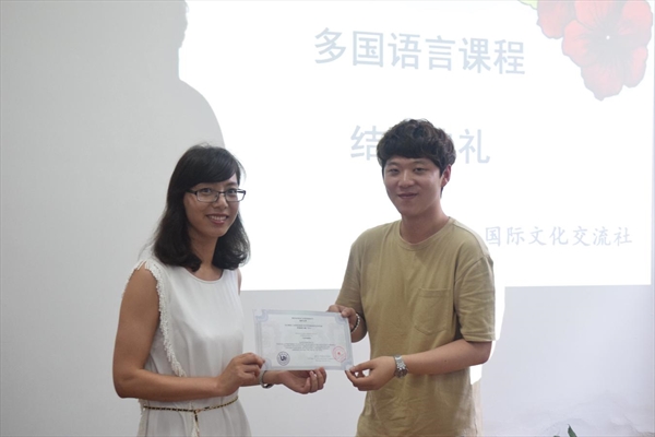 本学期多国语言课程共开设英语、德语、韩语、日语、西班牙语、法语等六种语言。十多周的课程已经结束了,参与课程的学校老师和学生们的外语水平都有了显著提高,其中33位学生经考核,表现优异,授予结业证书予以鼓励。此次的结业典礼,在鼓励大家学习优异表现的同时,也表达了对授课老师的感谢。其间色情导航