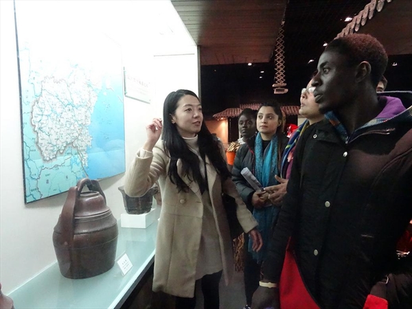 开学典礼结束后,全体师生合影留念,并集体参观了我校民俗博物馆。在体验民俗文化和传统特色的过程中,留学生新生开始了第一堂实践观摩课的学习,借助图