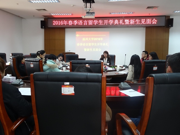 的留学生教育情况,鼓励新生们努力学习专业知识,积极参加校内的各类活动,在提升学业的同时,尽情享受中国文化带来的独特魅力。同时,她对每一位同学的汉语学习提出了要求,希望每位同学都能较好地适应温大校园生活,较快地提升汉语水平,顺利实现汉语学习的目标。