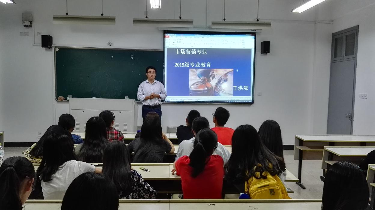 2015级市场营销专业的46位新生共同聆听了王博士的专题解读。