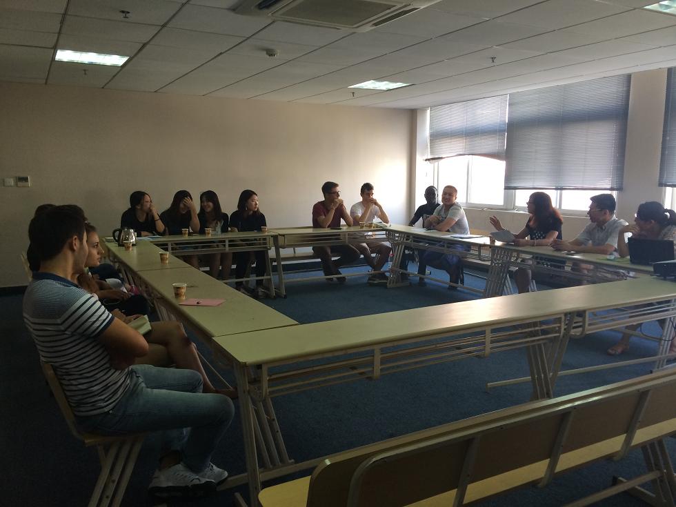 黄呼尔励老师系统解说了学院的选课制度,简要演示了选课步骤的相关流程,及时提醒新生在选课过程中需要注意的事项,同时,他还分析了学分计算的组成部分,以及考试、辅修等具体操作事宜,帮助留学生第一时间了解学院教学教务的具体情况。