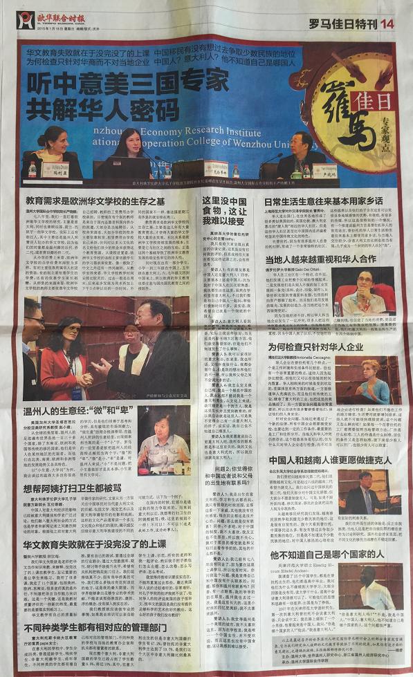 在2015年1月18日出版的意大利第一华文平面媒体《欧华联合时报》上,该报用整版报道了于2014年11月6-7日由温州市世界温州人研究中心、浙江省温州人经济研究中心、色情导航