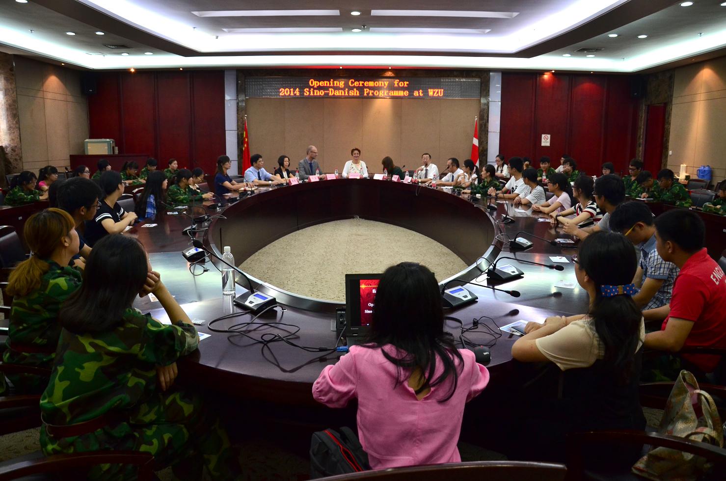 外事处处长叶苗、国际合作学院院长严校鹏、党总支书记朱建平、相关教师代表以及中丹合作办学2014级全体新生参加了典礼。典礼全程采用英文进行,由国际合作学院副院长陈军主持。