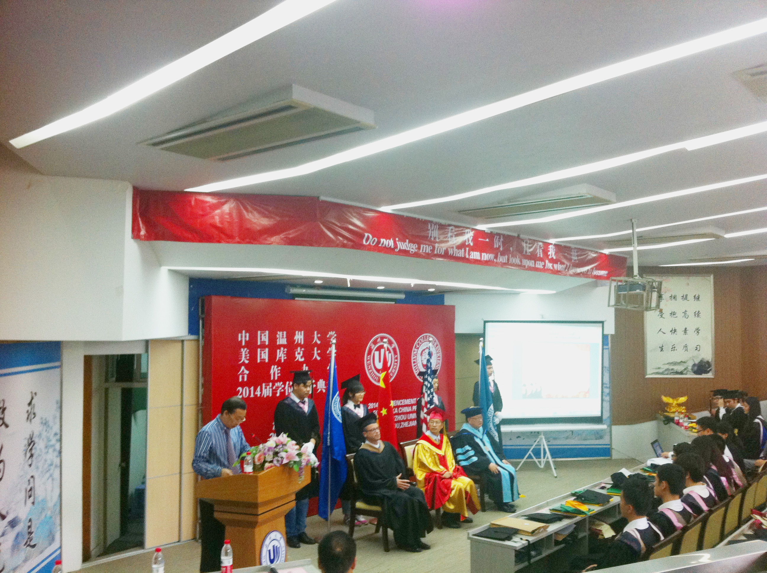 副校长黄少铭教授、库克大学副校长马克·皮特里博士(Mr. Mark Petrie )、库克大学中国总校区校长黄天中博士(Dr. Michael Hwang)出席,库克项目厦门办公室人员、国际合作学院领导、教师代表、部分毕业生亲友参加。典礼由国际合作学院院长严晓鹏博士主持。