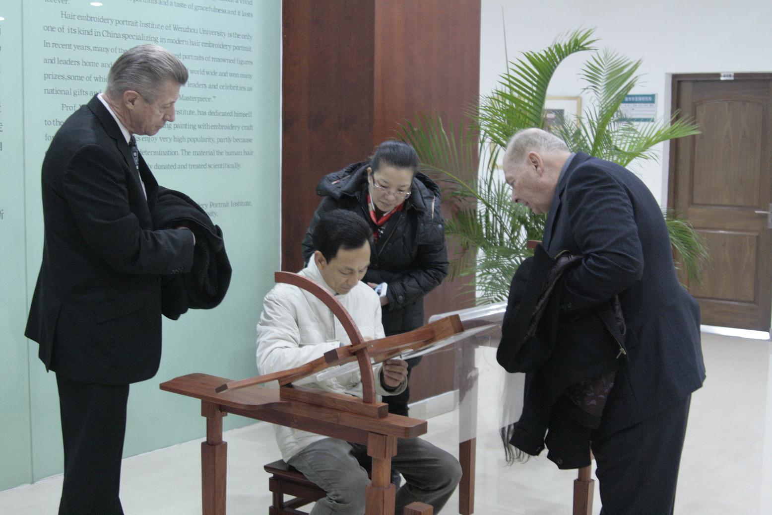 ,参观了学校校史馆、发绣馆、国际合作学院和机电学院实验室,并向在校师生展现了飞行的魅力。