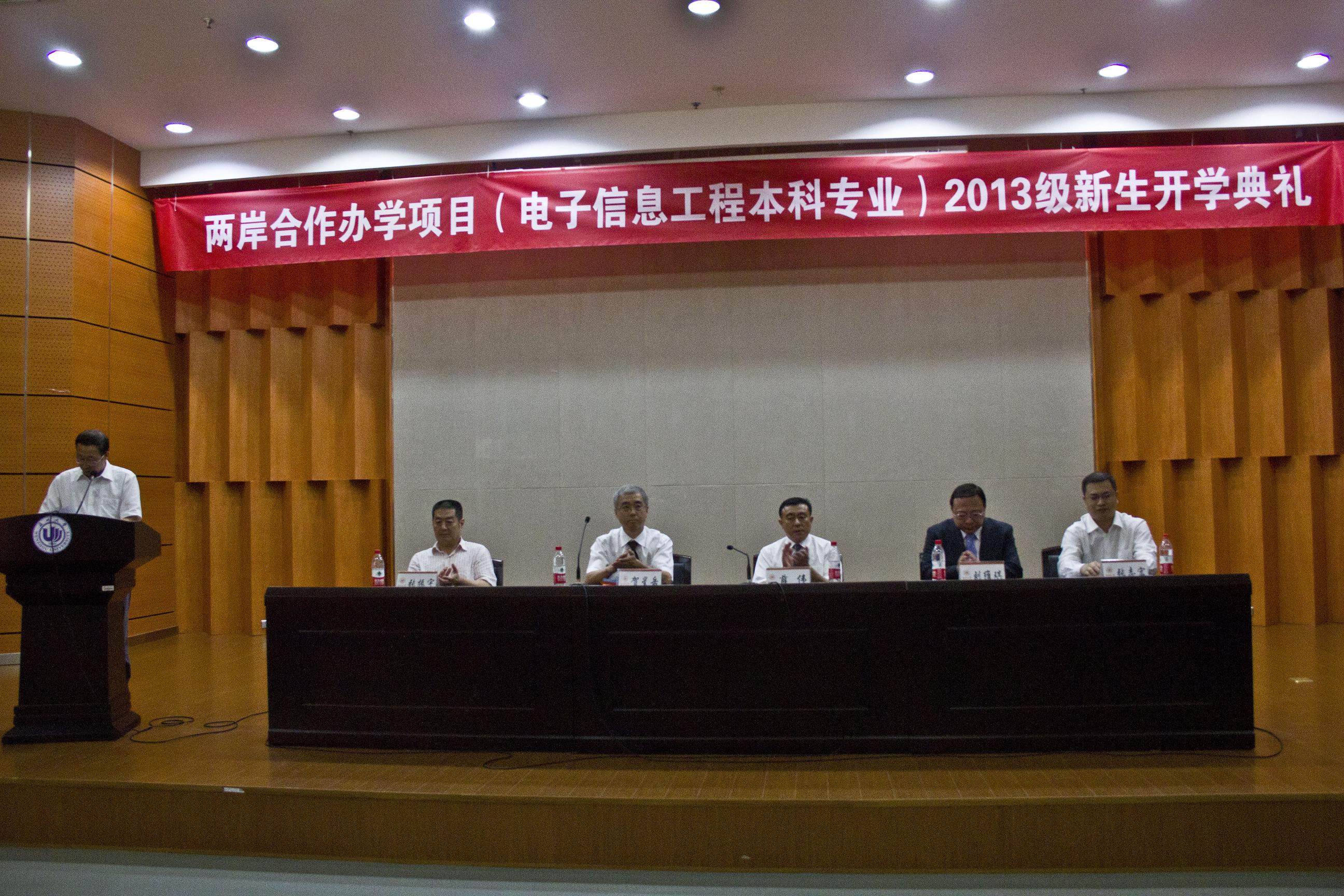 9月13日上午,我校在南校区岩松堂隆重举行两岸合作办学项目(电子信息工程专业本科教育项目)2013级新生开学典礼,台湾中华大学校长刘维琪,我校副校长薛伟、浙江工贸职业技术学院院长贺星岳,温州市教育局副书记、副局长张志宏,温州市台办副主任张振宇以及三校的有关学院、部门领导和老师出席典礼。开学典礼由色情导航
