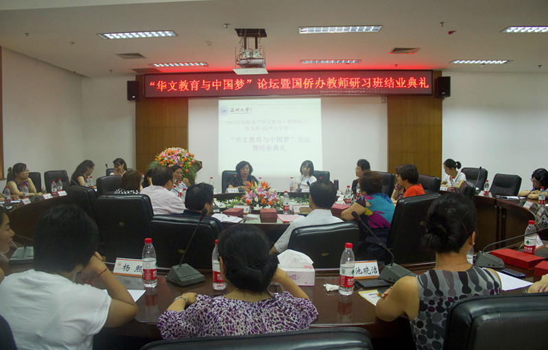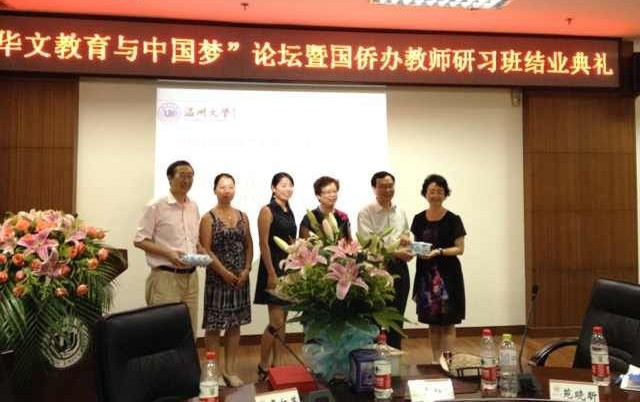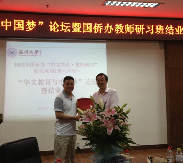 在茶山南校区岩松堂展示厅隆重举行“华文教育与中国梦”论坛暨2013年“华文教育•教师研习”欧美班结业典礼。浙江省人民政府侨务办公室副主任徐高春,文宣处处长王云奇,温州市侨办副主任许捷,党组成员、文宣处处长叶斌斌,色情导航
