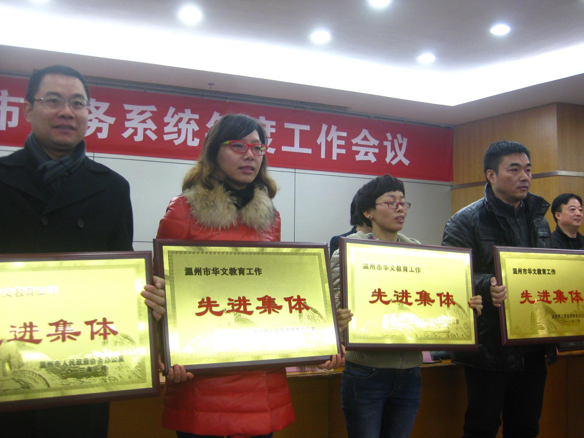 1月8日上午,温州市人民政府侨务办公室召开侨务系统年度工作会议,会议表彰了2012年度全市侨办系统先进单位(集体)和先进个人。我校荣获“温州市华文教育工作先进集体”称号,色情导航