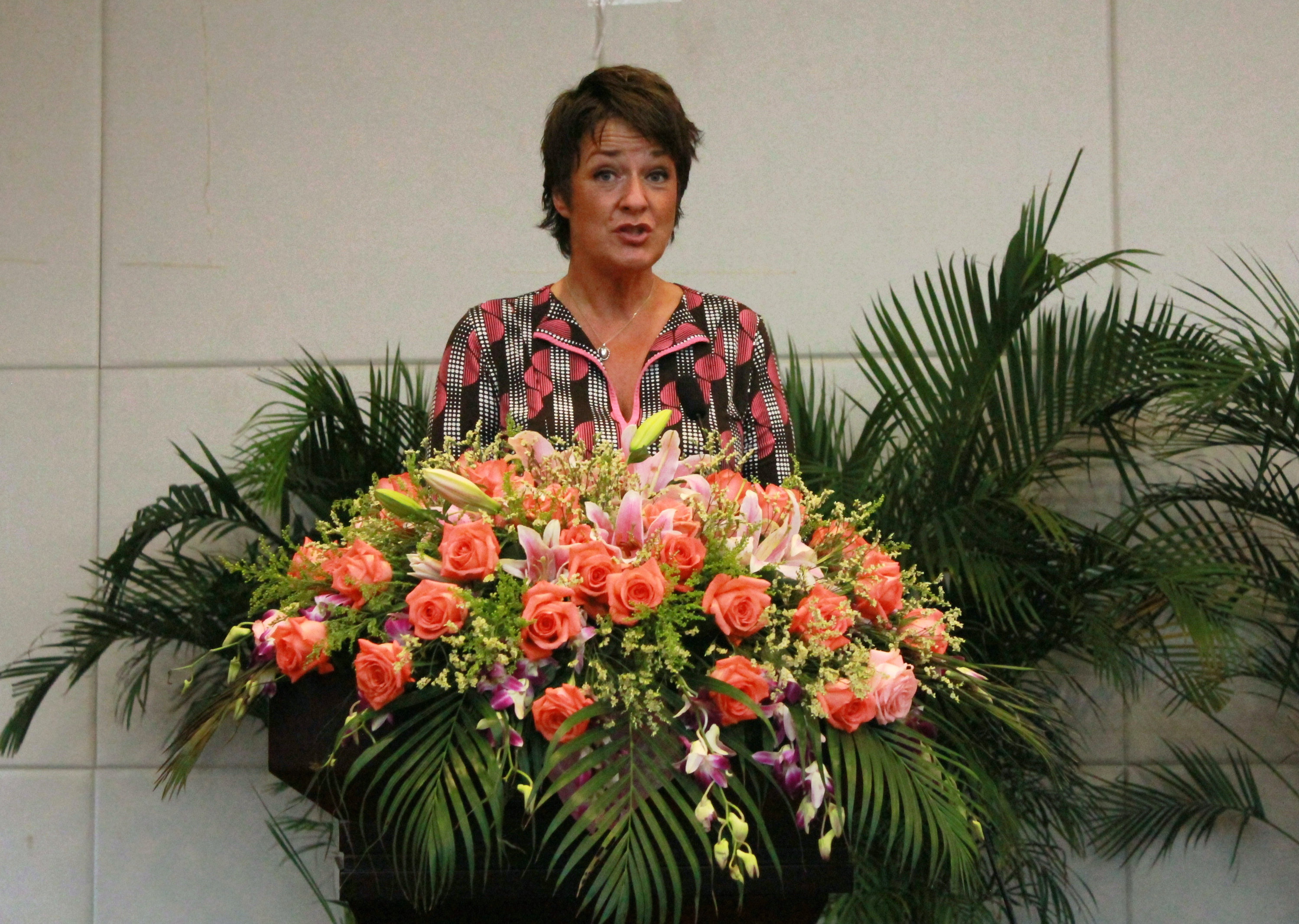 图为丹麦尼尔斯·布鲁克哥本哈根商学院Anya校长发表热情洋溢的讲话。杨涛 摄