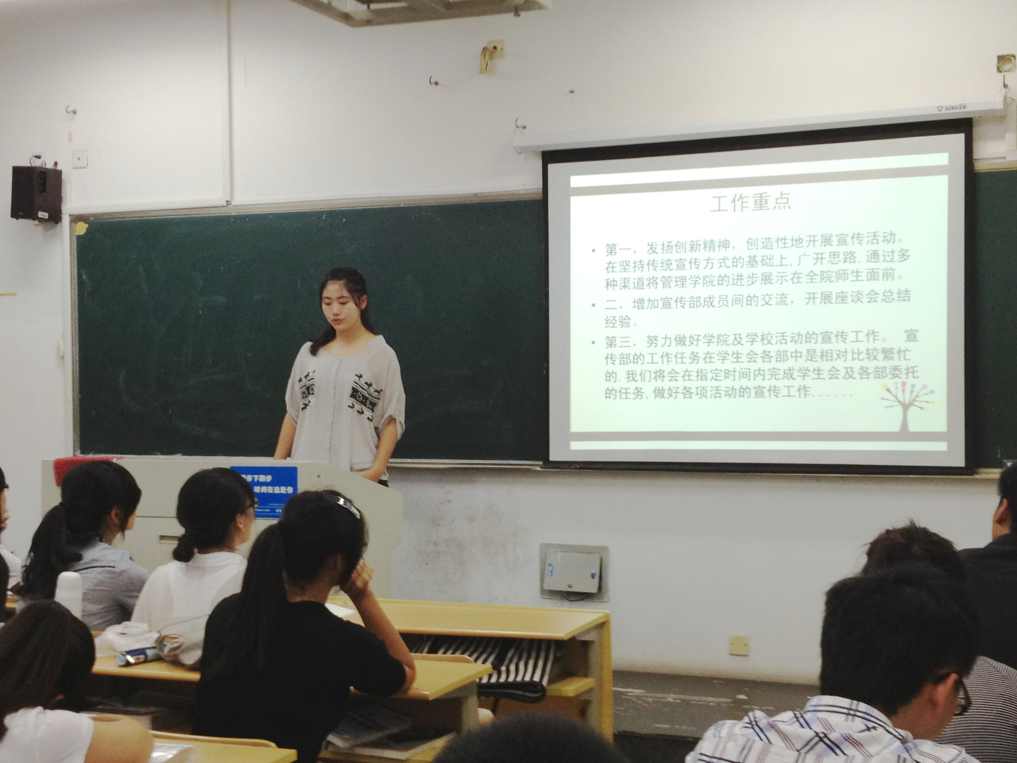 首先,团委书记陈赞安老师发表讲话,他正式宣布了2012-2013学年第一学期国际合作学院学生会全体成员任职名单,并对这届学生会提出几点希望:有责任心、有凝聚力、积极锻炼自己。他希望全体学生会成员做好表率,带动全体同学参与到学院的各项建设中去,将学院团学发展壮大。接着,院学生会的各个部门的部长们均作部门展示和自我介绍。最后,由学生会主席赵前进行总结发言。他强调了学习的重要性,并就工作方法、本学期工作安排等提出了一些建议。要求学生会成员具有较高的组织沟通协调能力,希望大家能建立起学习型组织,发挥先锋模范作用,成为一名优秀的学生干部,实现自我价值。