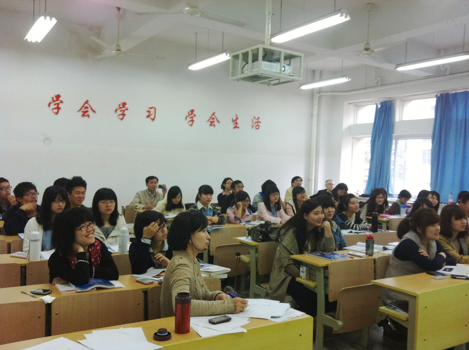 教学督导室两位专家盛培林教授和张力学教授来到2011级市场营销本科班(中丹),与丹方项目主管Jorgen Dalhoff一起,对陈冰冰教授任教的国际化课程《商务英语》进行了随堂听课,课后中外专家进行了深入的交谈和评课。他们一致认为,该班学生英语水平较高,呈现了良好的学习风貌;而陈冰冰教授精彩的课堂教学同样得到三位专家的肯定和赞许。