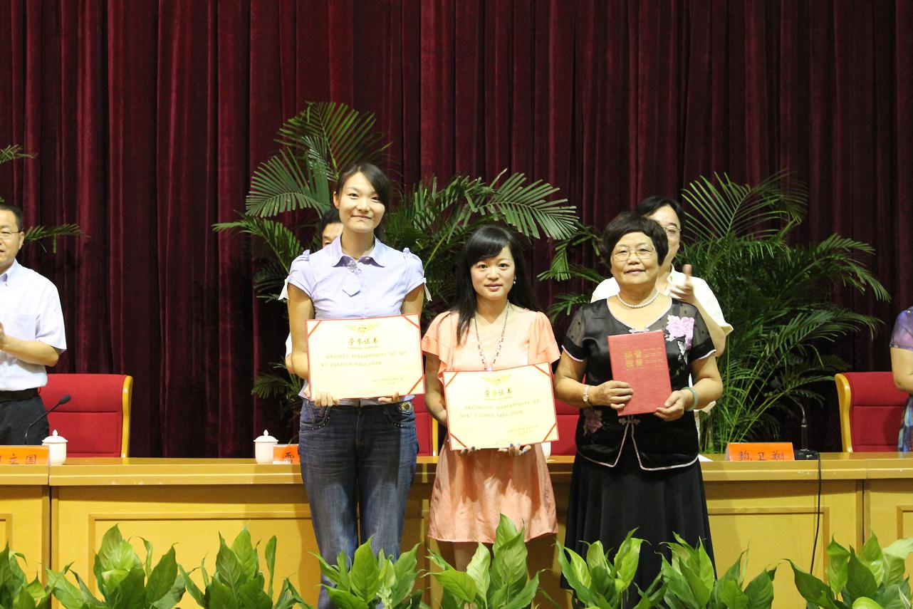 廖一帆、陈晓丹老师上台领取“先进个人”荣誉证书