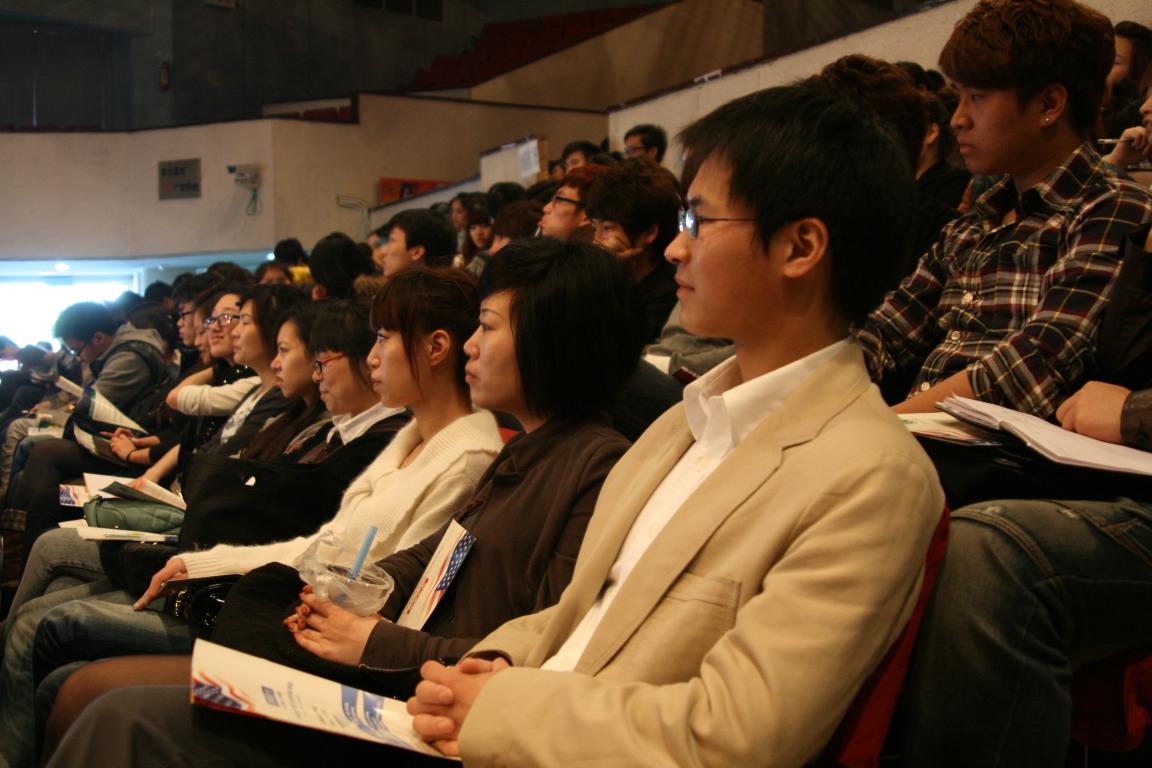 全体教职员工及07、09级学生聆听了黄天中博士生动精彩的报告。他向学生们介绍了该教学理念的独特之处,希望每个学生掌握适合自己的学习方法,做个性化的自己,用创意及时间管理的观念做好生涯规划。而后,在留学库克说明会上,库克大学副校长Gary Smith博士就库克留学、暑期游学事项及奖学金政策为同学们做了详细的说明。会后,他对同学的提问进行了一一答复。