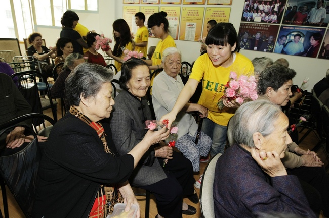师生代表和温州都市报晚霞俱乐部的文艺精英来到红景天广化老人公寓,为这里的百余位老人举办了“喜迎母亲节”联欢会,送上了节日的祝福和鲜花。