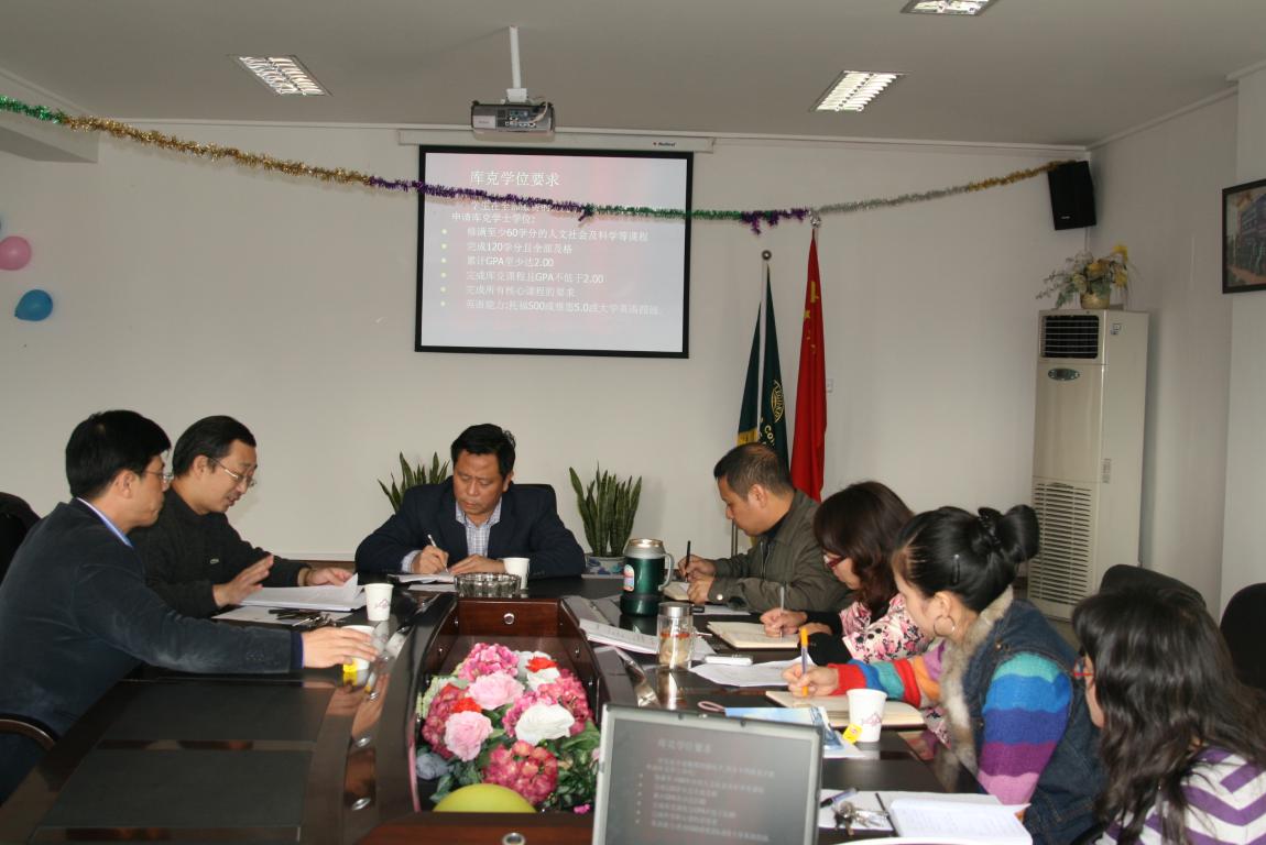 “十二五”发展规划及近期的运行机制作了汇报。方建敏书记就开学以来学院的党建及学生工作方面向陈书记作了汇报。随后,陈军副院长针对库克项目的运作状况作了介绍。