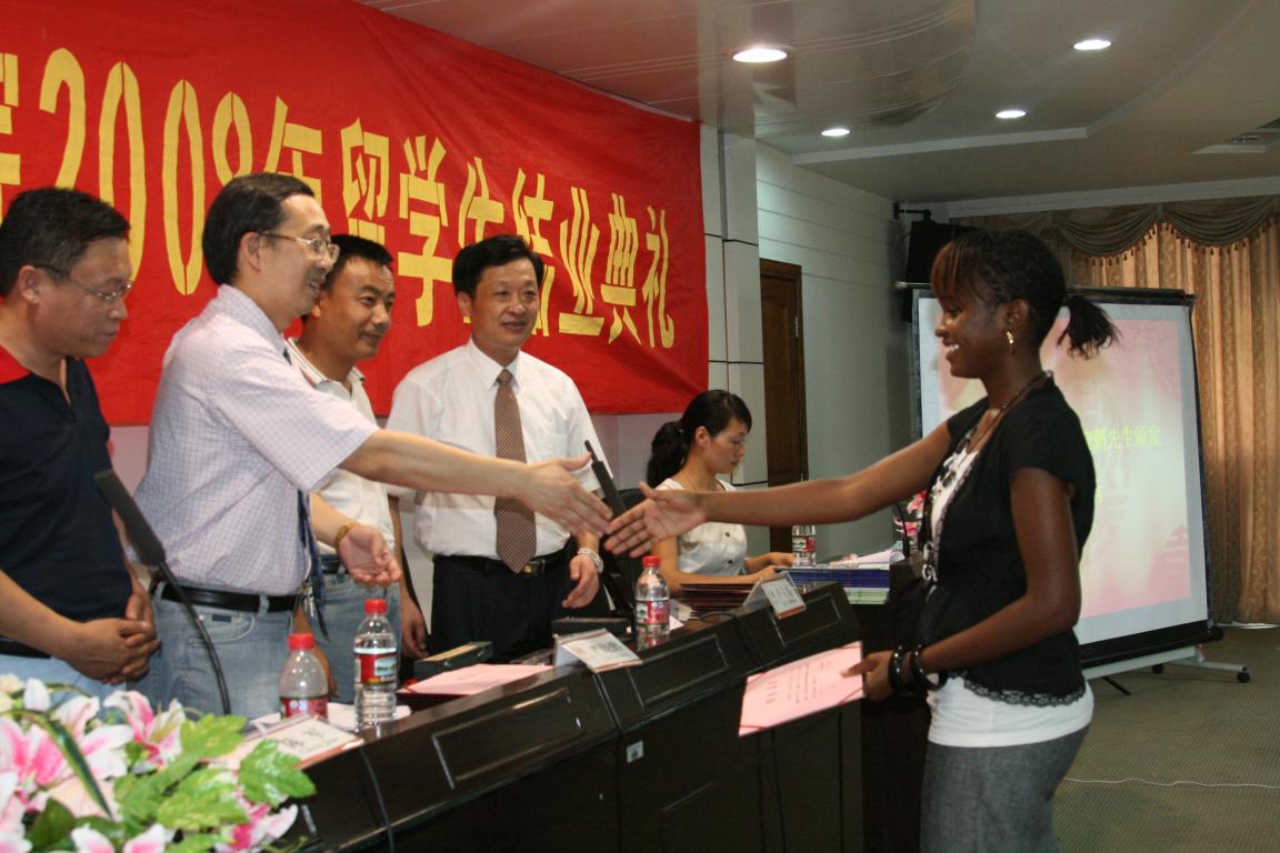 2008年留学生结业典礼在北校区行政楼三楼第四会议室隆重举行,来自加纳、肯尼亚、韩国、日本、意大利和美国的留学生们身着盛装参加了结业典礼。出席此次典礼的嘉宾有色情导航