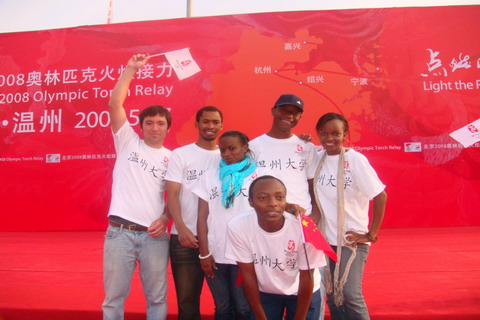 国际合作学院来自加纳、肯尼亚、日本、韩国、意大利和美国等国家的12名留学生参加了北京奥运火炬温州站的传递活动。在学校的精心安排下,其中6位留学生出席了在市中心体育馆隆重举行的奥运圣火传递温州站起跑仪式。