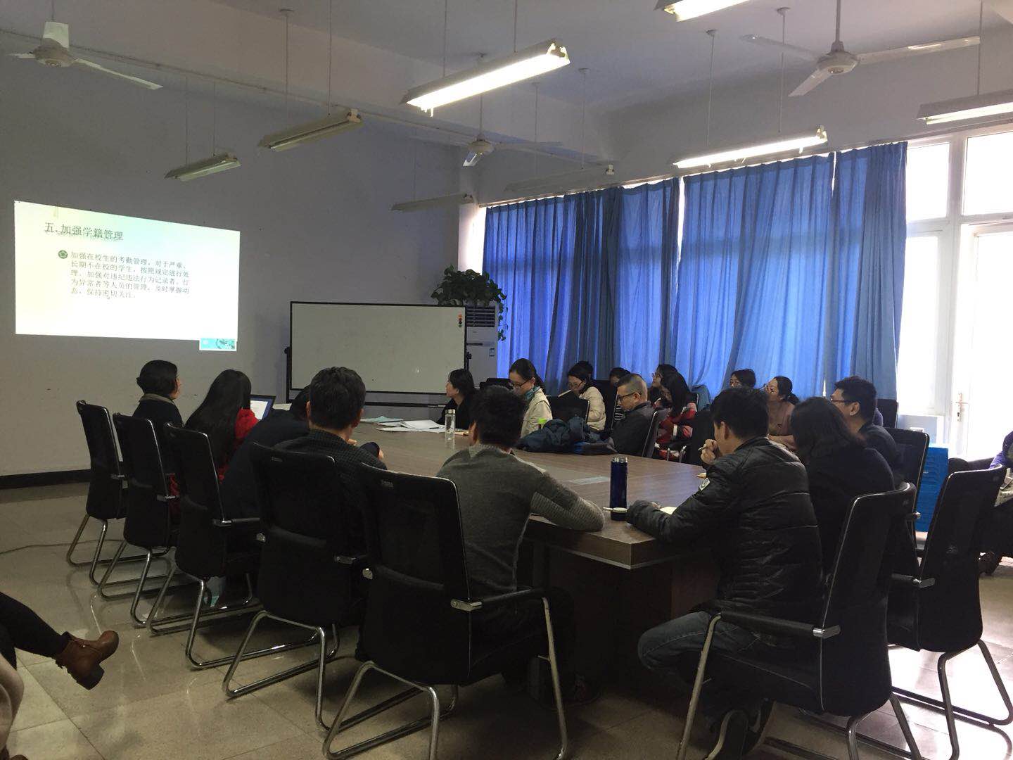 随后,副院长陈军教授传达了学校教学工作会议的精神并就教学中期检查工作情况进行了布置。重点就期中教学工作管理、教师教学情况、教学效果检查及2018留学生招生计划及毕业生就业问题进行了发言。陈院长还强调了三个安全:实验室安全工作、校园安全以及安全教育,安全是改革发展的基础,是一切工作的底线。他表示,要从严执行安全工作制度,加强安全检查工作,加强安全教育宣传,真正形成人人关注安全、人人遵守安全、人人服务安全的安全文化氛围。