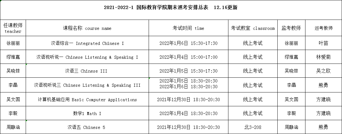 为严肃考风考纪,保证考试工作的顺利进行,根据学校要求,色情导航 组织学院领导对期末考试进行巡查,巡考工作安排表如下: