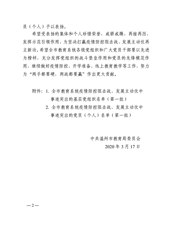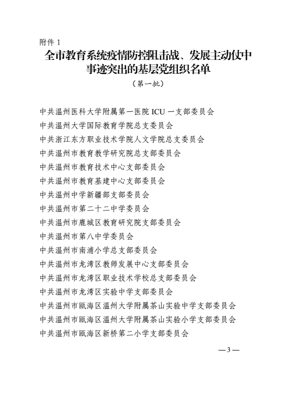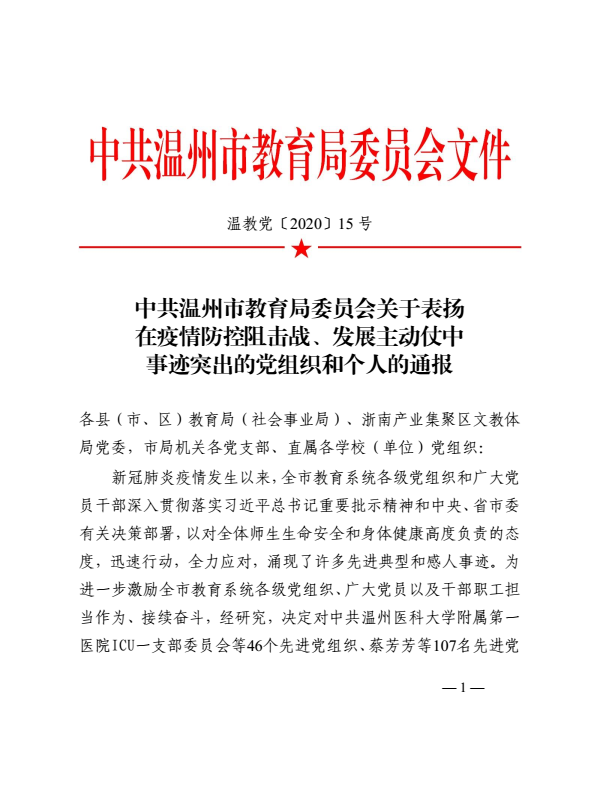 新冠肺炎疫情发生以来,色情导航 总支委员会深入贯彻落实习近平总书记重要批示精神和中央、省市委有关决策部署,以对全体师生生命安全和身体健康高度负责的态度,迅速行动,全力应对,在疫情防控中表现出色,获温州市教育系统疫情防控阻击战、发展主动仗中事迹突出基层党组织称号。